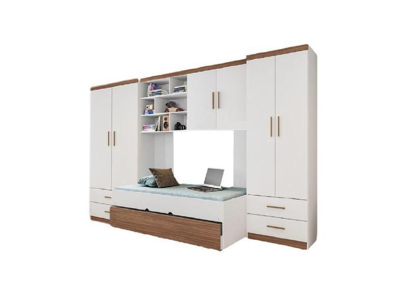 Quarto Juvenil Guarda-Roupa Com Bicama E Armario Aereo - Phoenix Baby
