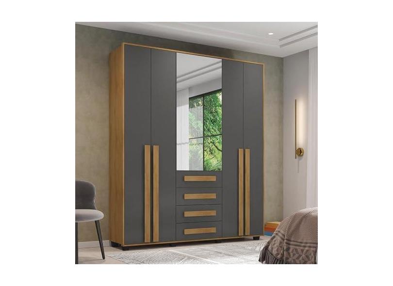 Roupeiro 5 Portas Ragusa Cinamomo Grafite