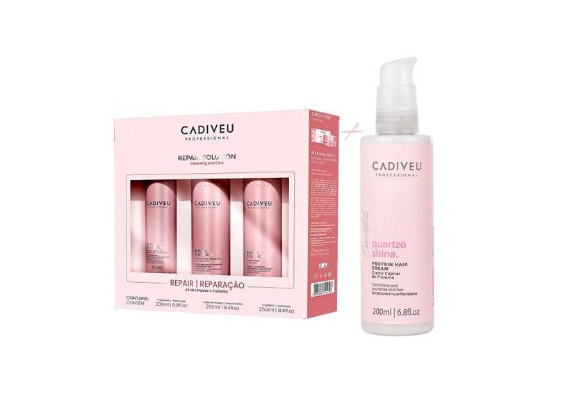O menor preço encontrado no Brasil para Kit Cadiveu Repair Solution + Creme Quartzo Shine Protein - Cadiveu Pr atualmente é R$ 329,80.