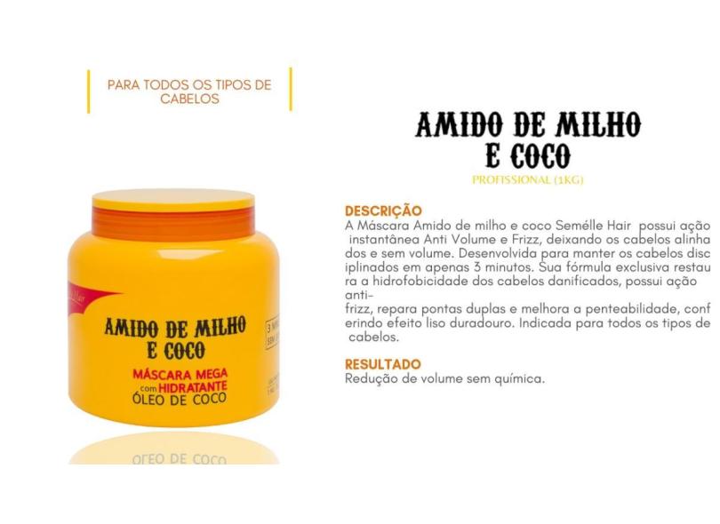 Máscara Hidratação Amido De Milho E Coco Semelle Hair 1 Kilo