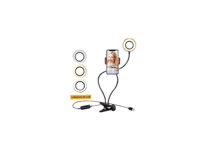Iluminador Ring Light Suporte para Mesa Articulado para Celular com Controle