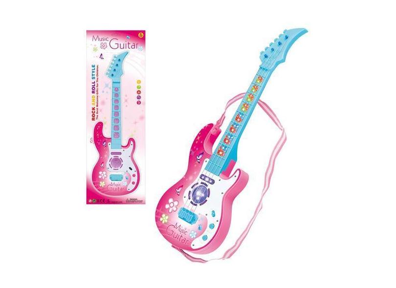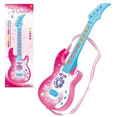 Guitarra musical brinquedo infantil com som e luz Led Rosa - Marca