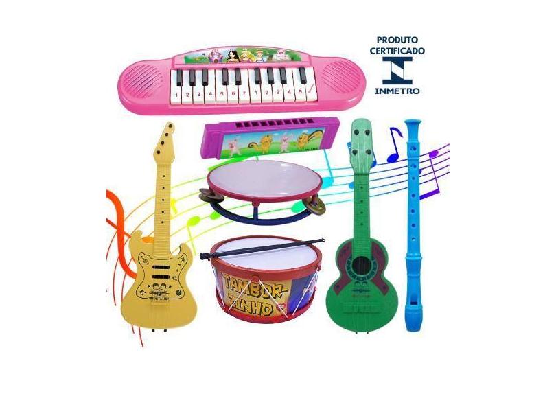 Kit Piano Teclado Tambor Gaita Infantil Viola Guitarra 7 Brinquedos Mu