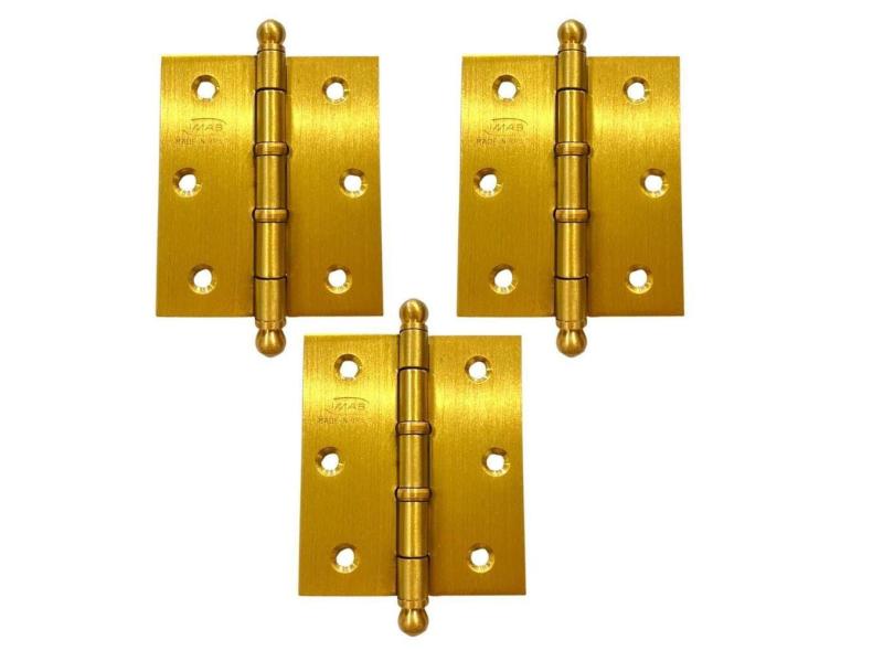 Dobradiça Porta Dourada Acetinada Escovada 3 X 2 1/2 Anel