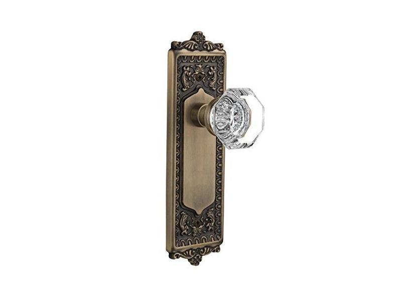 Nostalgic Warehouse Placa de ovo e dardo com puxador de cristal Waldorf, passagem - 7 cm, latão antigo