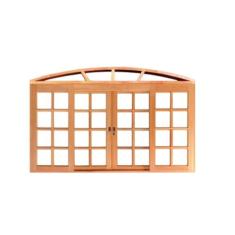 Janela Correr Quadriculada 130cm Arco 4 Folhas em Madeira Maciça Cedro