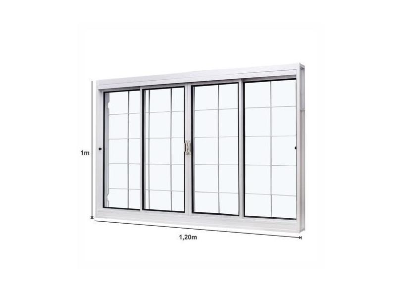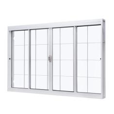 Janela de Aço de Correr Central 100x120cm 4 Folhas com Grade Quadricul