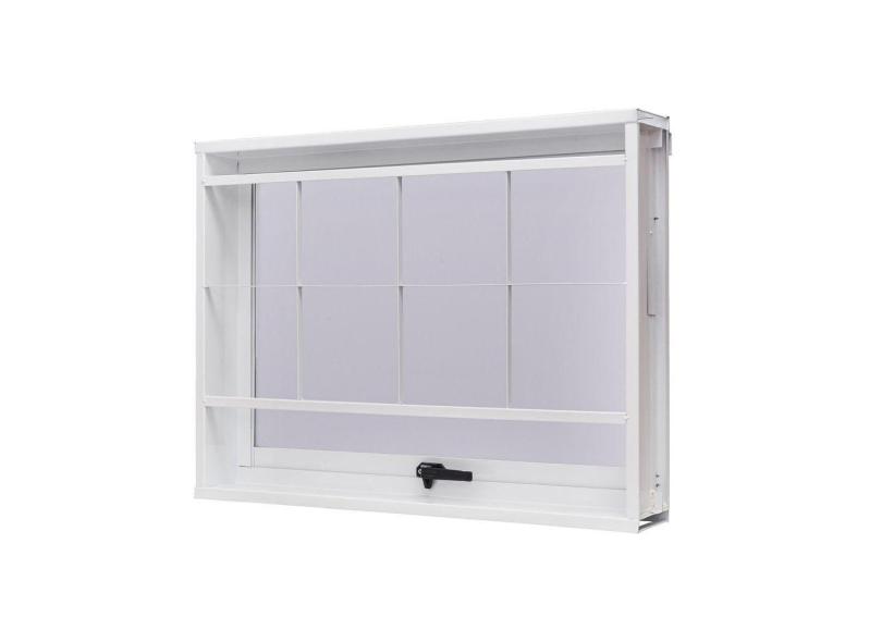 Janela de Aço Maxim-Ar 50x50cm com Grade Quadriculada e Vidro Boreal Unicsol Ramassol Branco