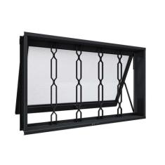 Janela de Aço Maximo Ar com Grade Mosaico 60x80x12cm Facilitá Lucasa Preto
