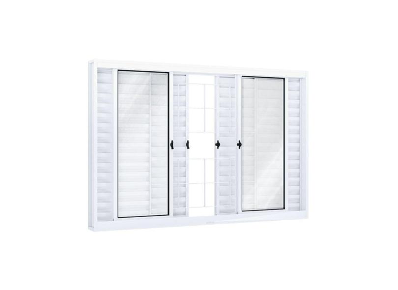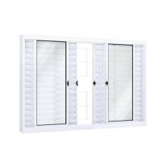 Janela de Aço Veneziana 120x150cm 6 Folhas com Grade Quadrada e Vidro Riobras Branco
