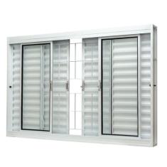 Janela de Aço Veneziana Central 100x200cm 6 Folhas com Grade Quadriculada e Vidro Liso Qualitysol Ramassol Branco