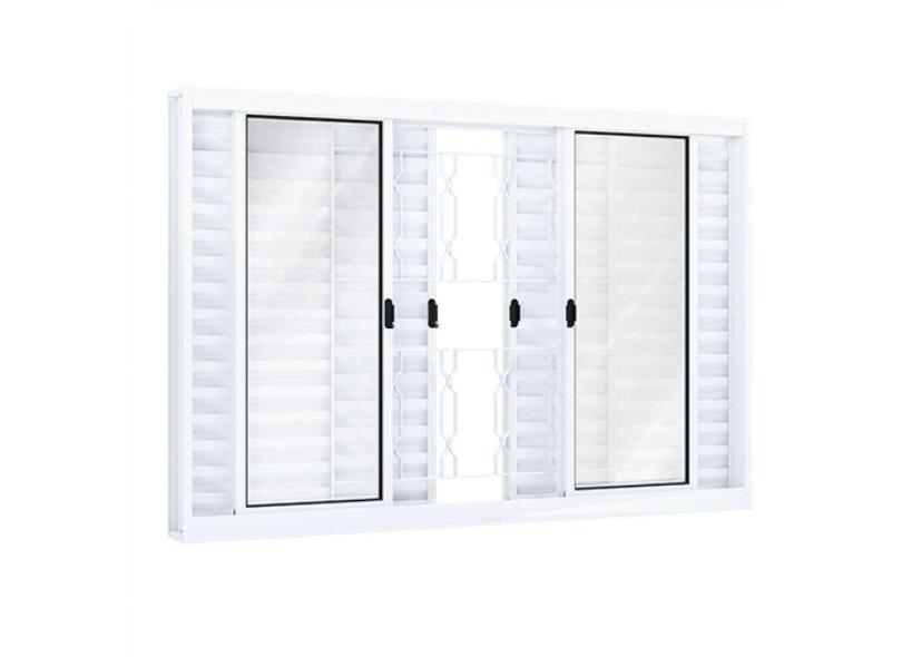 Janela de Aço Veneziana de Correr 100x100cm 6 Folhas com Grade Mosaico Riobras Branco