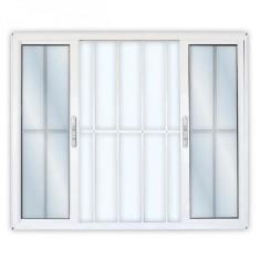 Janela de Alumínio de Correr 100x200cm 4 Folhas 2 Fixas com Grade e Vi