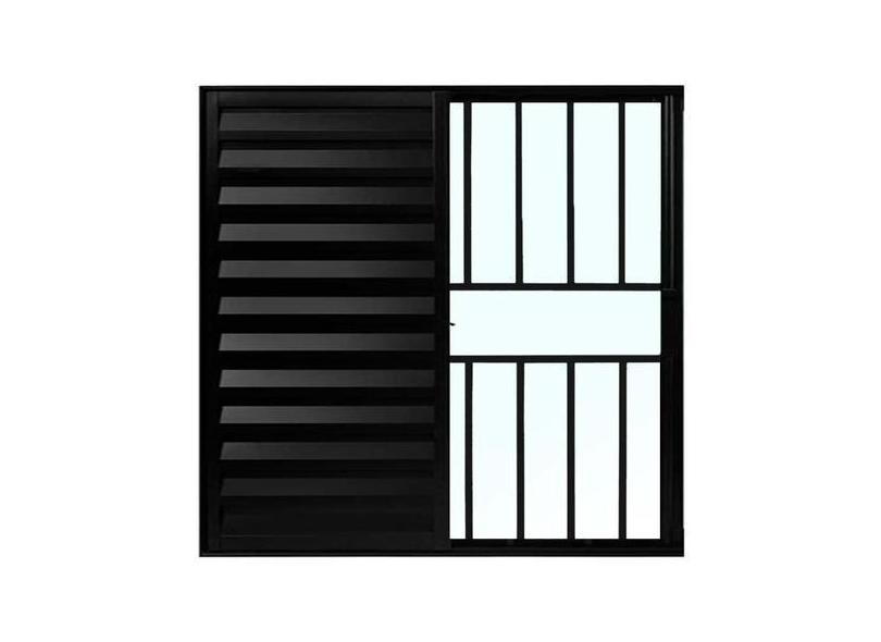 Janela de Alumínio Preto Veneziana de Correr 3 Folhas Com Grade CMC Mo