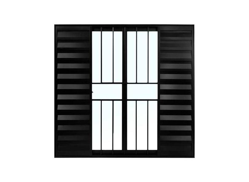 Janela de Alumínio Preto Veneziana de Correr 6 Folhas Com Grade CMC Mo