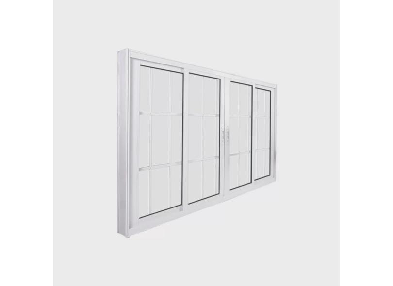 O menor preço encontrado no Brasil para Janela de Correr Abertura Central 4 Folhas com Grade Vidro Liso 100x150cm Premium Esquadrias atualmente é R$ 1.555,53.