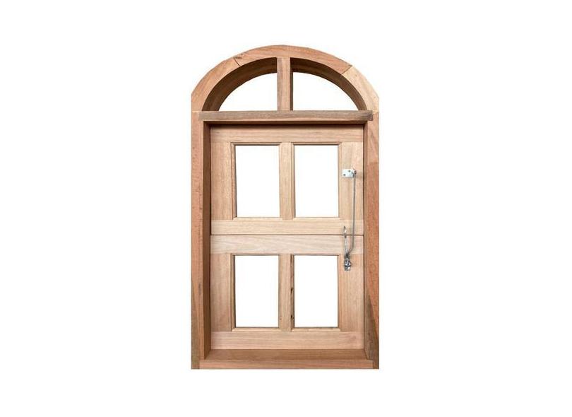 Janela de Madeira Vitro Capelinha Basculante em Arco Padrão Cedro Esqu