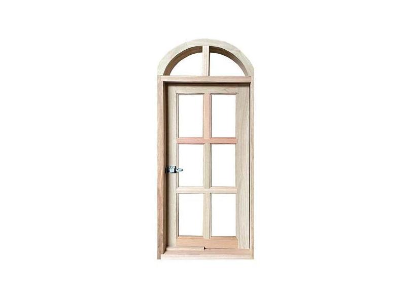 Janela de Madeira Vitro Capelinha Pivotante em Arco Padrão Cedro Esqua