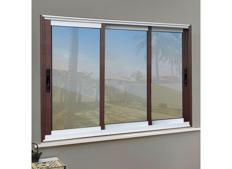 Janela Elite 3 Folhas Moveis Sequenciais 100 X 150 Vidro Reflex Mix Corten