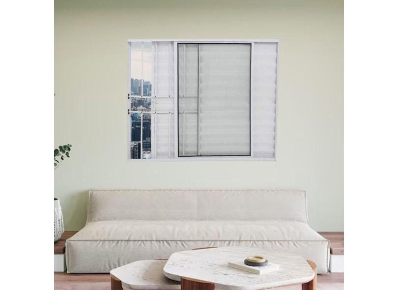 Janela Veneziana de Alumínio 3 Folhas 120 x 150cm com Grade Linha Modular Branco