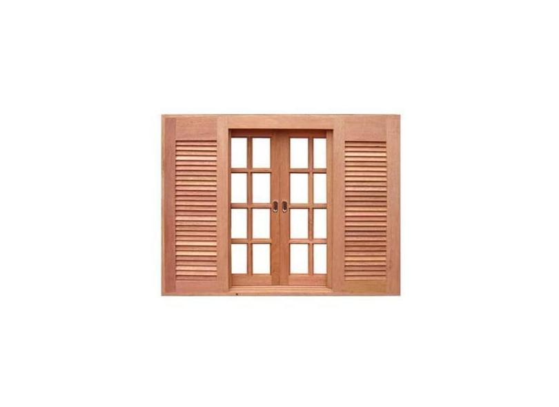 Janela Veneziana Quadriculada Reta 6 Folhas em Madeira Maciça Cedro Ar