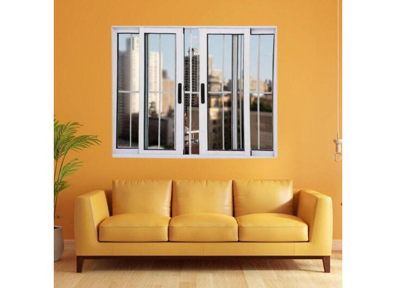 Janela Vitrô de Alumínio 4 Folhas 100 x 120cm Linha 25 Com Grade Branco