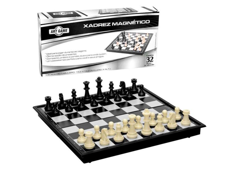 O menor preço encontrado no Brasil para Jogo De Xadrez Magnético Com Tabuleiro Dobrável Peças Imã - Art Game atualmente é R$ 41,99.