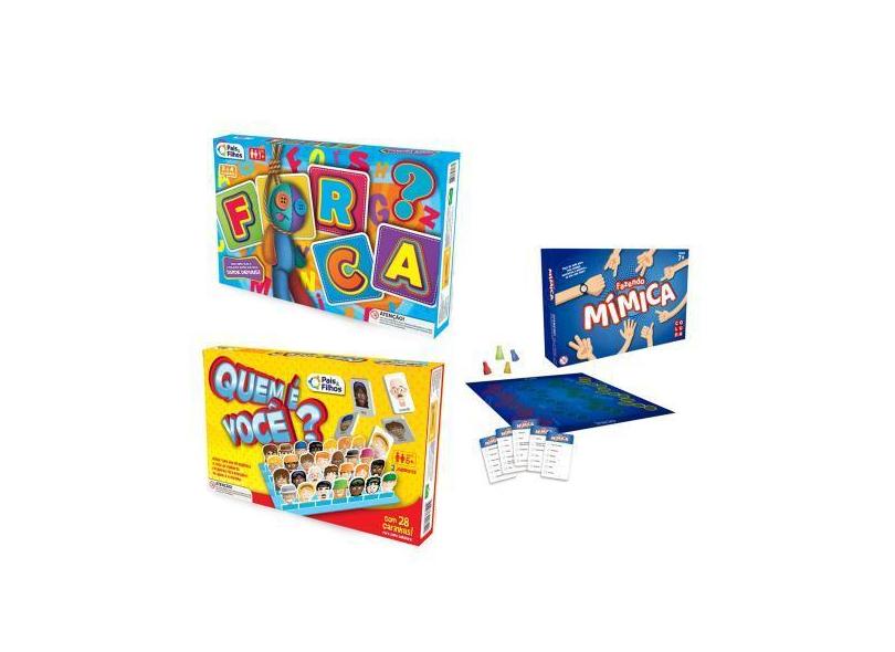 Jogo Tabuleiro Forca + Quem é Você Cara a Cara + Mimicas - Pais e Filh