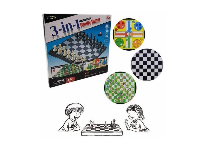 Jogos De Tabuleiro 3 Em 1: Xadrez, Ludo E Cobras E Escadas - Shop Mix