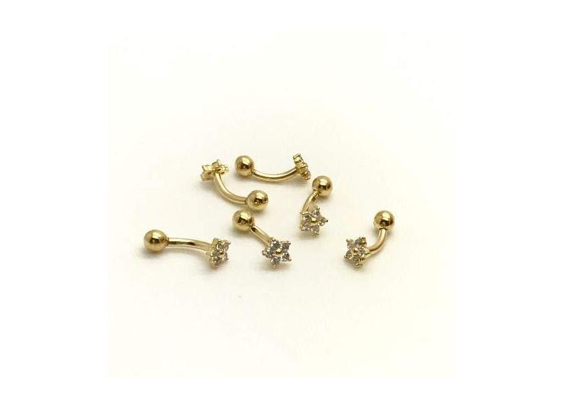 Ouro 18K Piercing Hook Trágus Cartilagem Flor Ponto Luz Helix Co110 K045