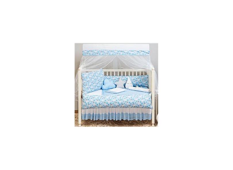 Kit Berço Protetor Lateral Nuvem Menino 8 Peças