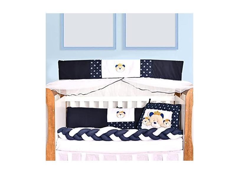Kit Berço Trança Bebê Menino Família Urso Real Marinho 9 Peças