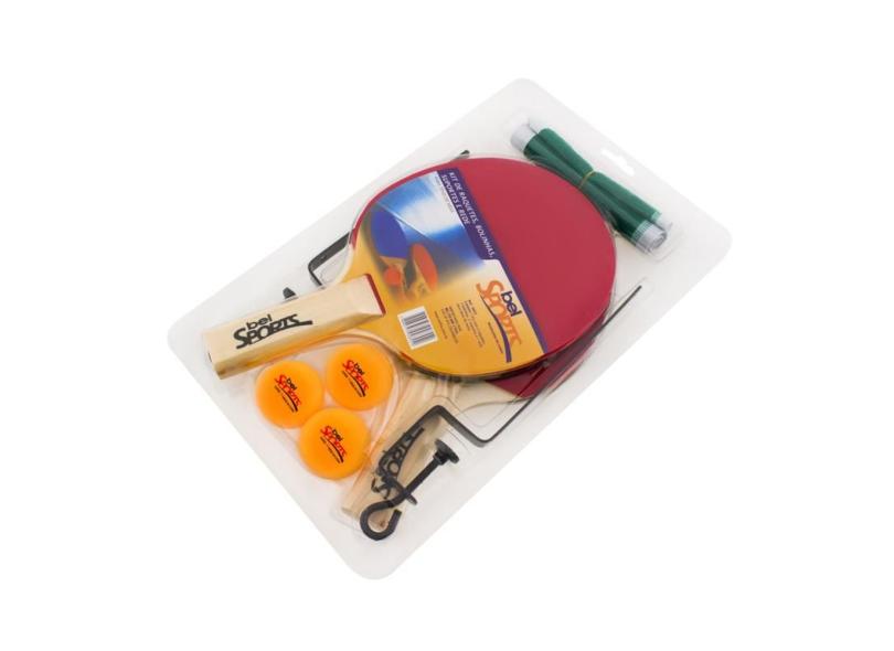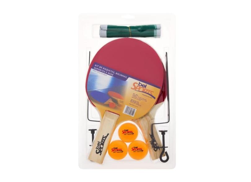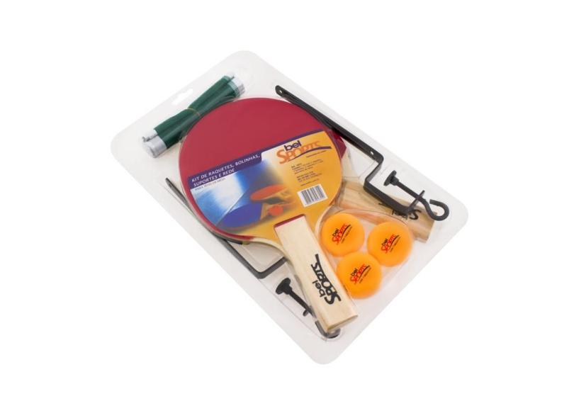 Kit tenis de mesa com 2 raquetes suporte e rede 3 bolinhas