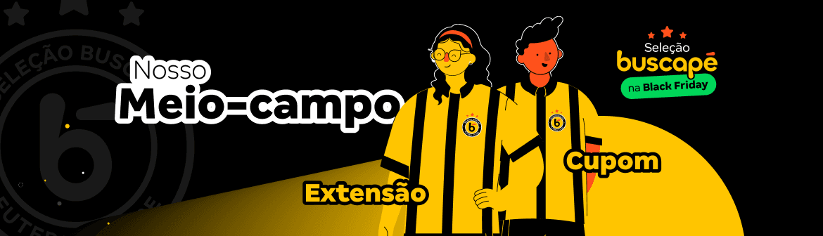 Uma seleção campeã tem que ter um meio-campo de respeito. Na Black Friday do Buscapé, os Cupons de Desconto e a Extensão do Busca já estão prontos para armar todas as jogadas e te ajudar a fazer um golaço!