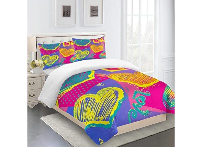 Conjunto De Capa De Edredom Simples Roxo Amarelo Coração Cama Microfibra Capa De Edredom Macio Conjunto De Edredom 140x200cm Conjuntos De Capa De Edredom Com Fecho De Zíper Conjunto De Cama Inclui
