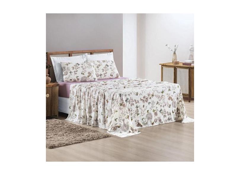 Conjunto Lencol Casal Queen Size Kristen 100% Algodao Rosa - De Luca E