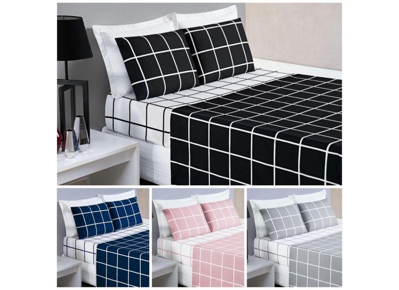 Conjunto Lençol Super King Austin Xadrez 200 fios preto