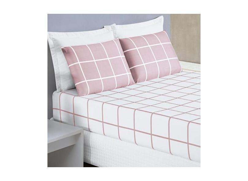 Jogo Cama Lençol Brooklyn King Quadriculado Micropercal 200 Fios 3 Peç