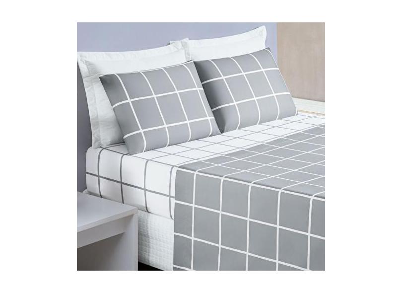 Jogo Cama Lençol Brooklyn King Quadriculado Micropercal 200 Fios 4 Peç