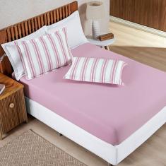 Jogo Cama Lençol Daily Casal Padrão Malha 100% Algodão Listrado 3 Peça