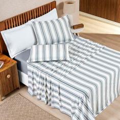 Jogo Cama Lençol Daily Solteiro Malha 100% Algodão Listrado 3 Peças - Cinza