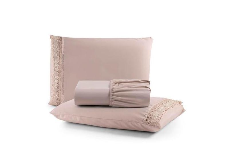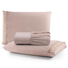 O menor preço encontrado no Brasil para Jogo Cama Lençol Haia King Percal 200 Fios 100% Algodão Guipir Bordado Inglês 3 Peças - Avelã atualmente é R$ 128,08.