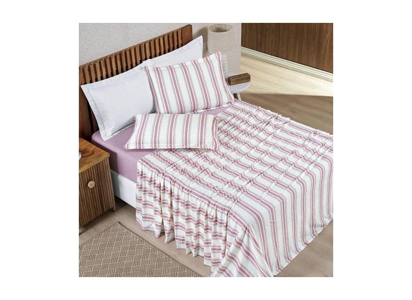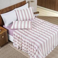 Jogo Cama Lençol King Malha Algodão Listrado - Rosê - Casa Scarpa