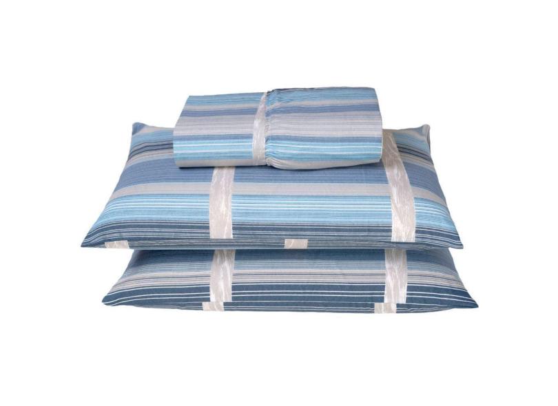 Jogo Cama Lençol Queen 180 Fios 3pçs Azul Listrado