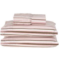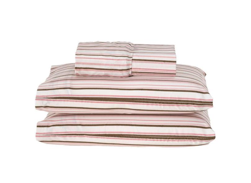 Jogo Cama Lençol Queen 180 Fios 3pçs Rosê Listras
