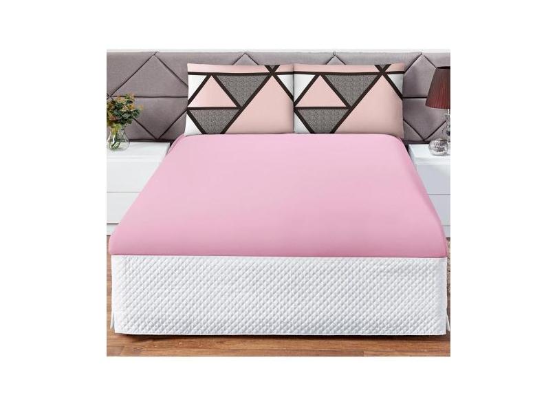 Jogo Cama Lençol Shine King 3Pçs Geométrico Rosa - Casa Scarpa