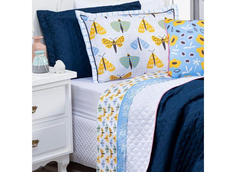 Jogo De Cama Borboletas Branco/Azul Solteiro 03 Peças