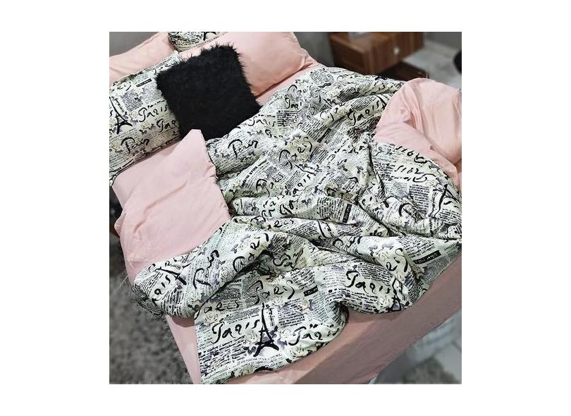 Jogo De Cama Casal Comum 7 Peças Paris Edredom E Almofada - Casa Da Fa