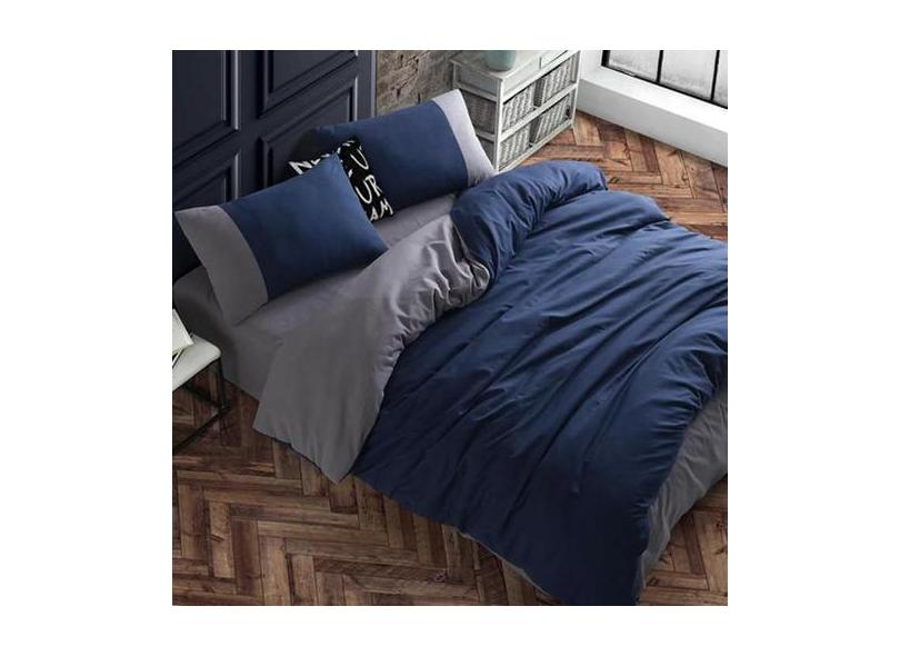 Jogo De Cama Casal Comum Marinho Com Cinza 7 Pç Com Edredom - Casa Da