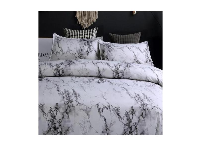 Jogo De Cama Casal King 7 Peças Com Edredom Mármore Decor - Casa Da Fa